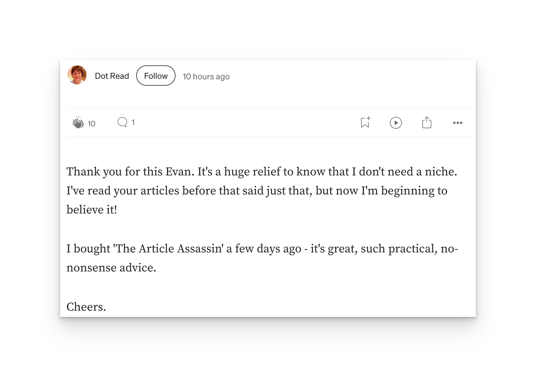 And that path became Article Assassin — a writing system for people who don’t have the luxury of farting around waiting for inspiration to show up with a latte.